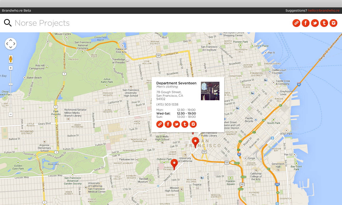 A website that allowed people to search by clothing brands. Only available in San Francisco.